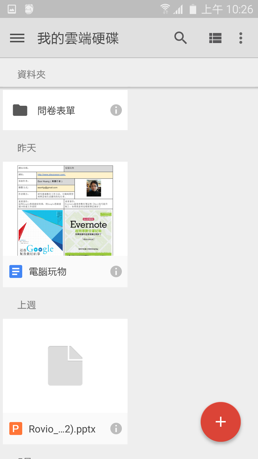 Google 雲端硬碟讓檔案可以用小預覽圖的方式展開在畫面中,而可以手動滑動拖曳來整理檔案的設計,更是 App 上非常有創意的革新,你可以實際手動試試看,會發現比很多雲端硬碟 App 更能有效率管理檔案。