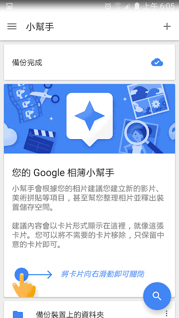 或許是之前全部自動化產生特效照片影片的功能對用戶來說太過直接,所以現在新的 Google 相簿透過[小幫手]頁面,讓我們可以先看到 Google 相簿自動產生的特效,然後再決定要不要留在相簿中。
