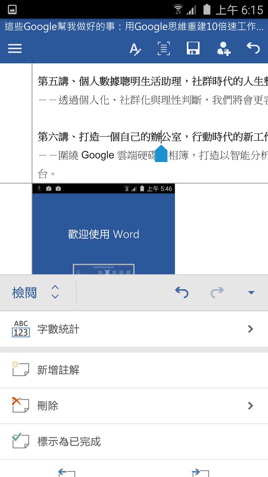 另外因為微軟 Office App 支援了許多電腦版上常用的重點編輯功能,當我在行動中臨時需要編輯一份 Office 文件時,確實可以在最大程度符合電腦編輯需求的情況下,在手機上也完成相同的工作。