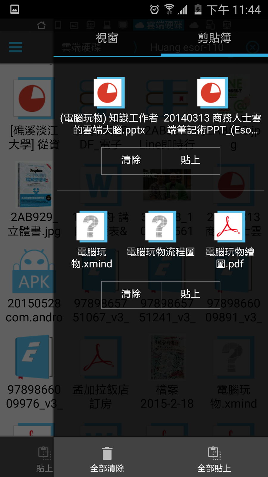 在這個「剪貼簿」我可以看到自己分批複製的檔案清單,而我可以換到其他資料夾,輕鬆的將任何一次的檔案複製清單「貼上」,這樣檔案就會複製到新資料夾中。