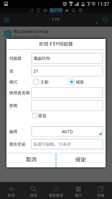 我測試過的 FTP 在「 ES 檔案瀏覽器」中都能順利連上,如果有繁體中文編碼問題在編碼處切換為 BIG5 等對應編碼也能解決問題。